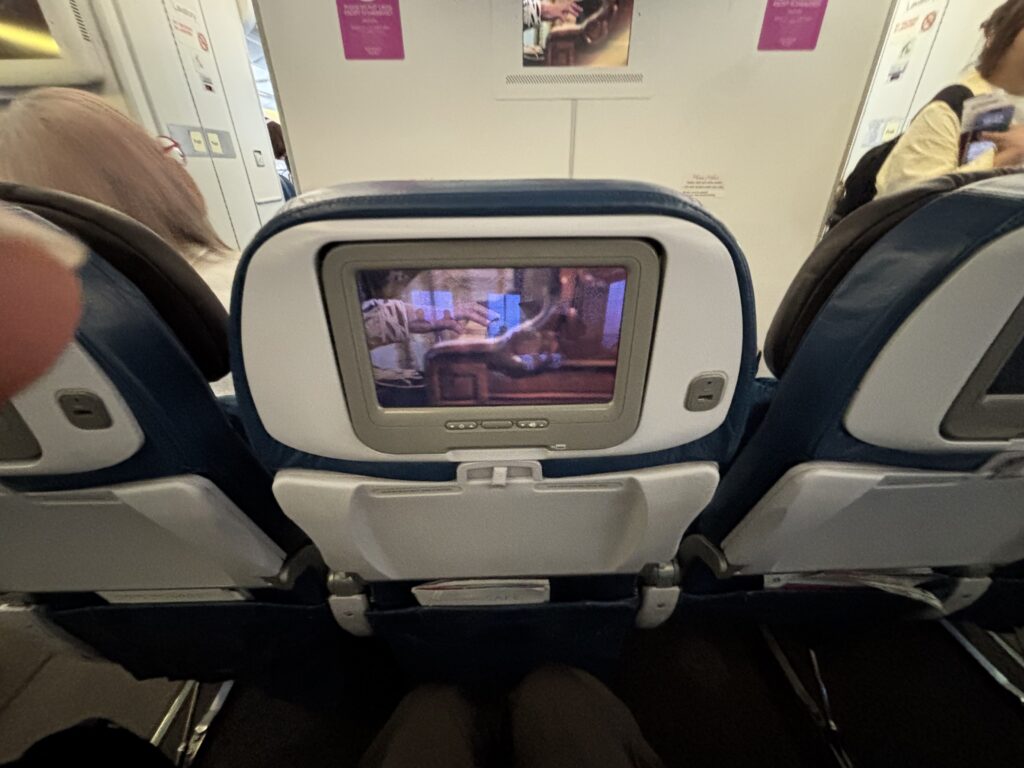 座席の間隔はよくある感じの拳1個半というところでした。モニターは1世代前のものというところですが、全く問題ないですね。さらに、ハワイアン航空は機内Wi-Fiが座席クラス問わず無料で使用する事ができます。