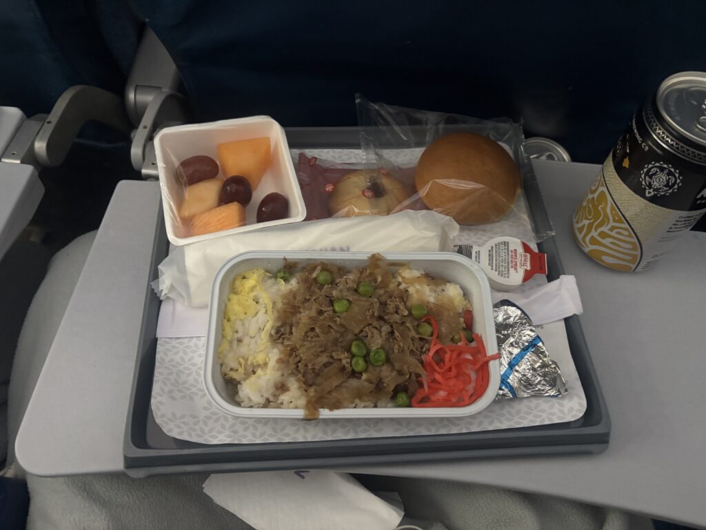 ホノルルから日本への帰国は約8時間半のフライトでしたが、機内Wi-Fi、食事等で快適であっという間のフライトでした。※ホノルルから日本へのフライトは偏西風の影響を受けて行きよりも時間がかかります。