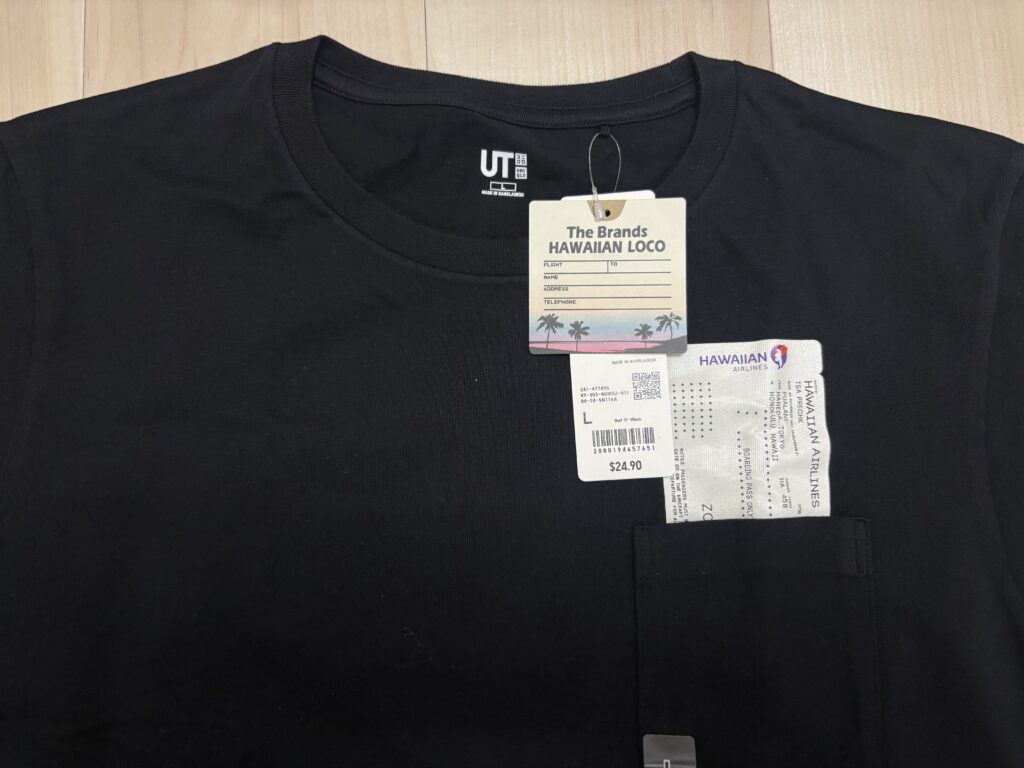 胸ポケットにハワイアン航空の航空券プリントがされたものを私は購入しました。